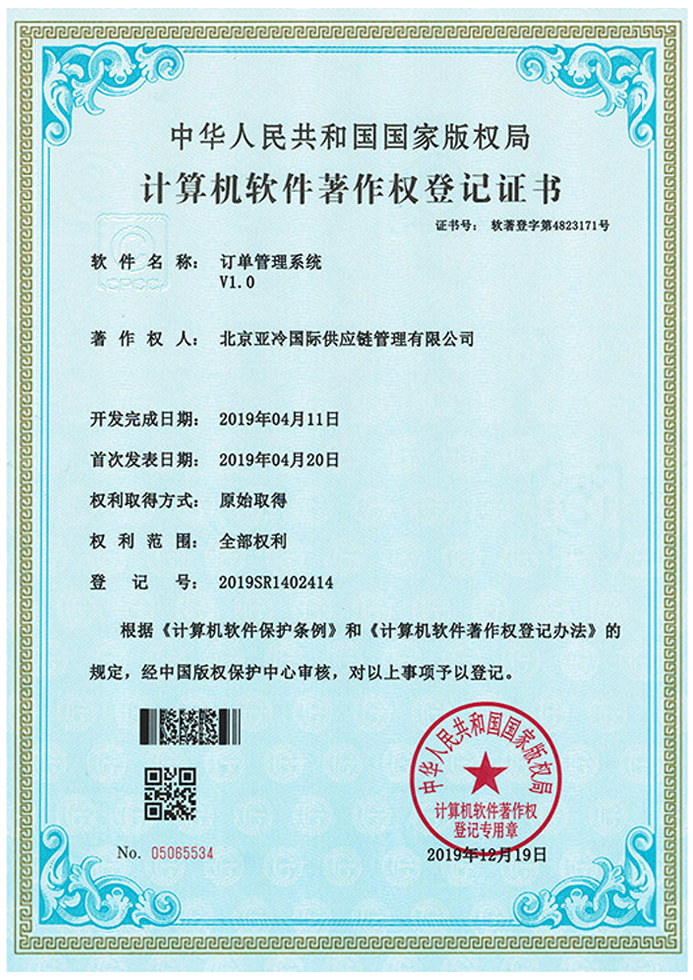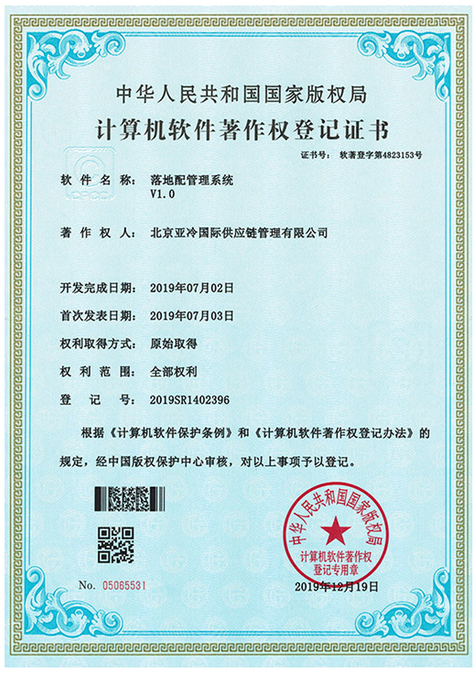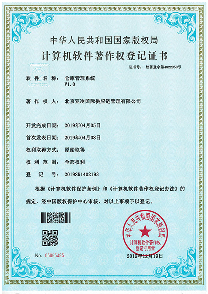 冷鏈客戶管理體系統(tǒng)軟件著作權(quán)登記證書(shū)