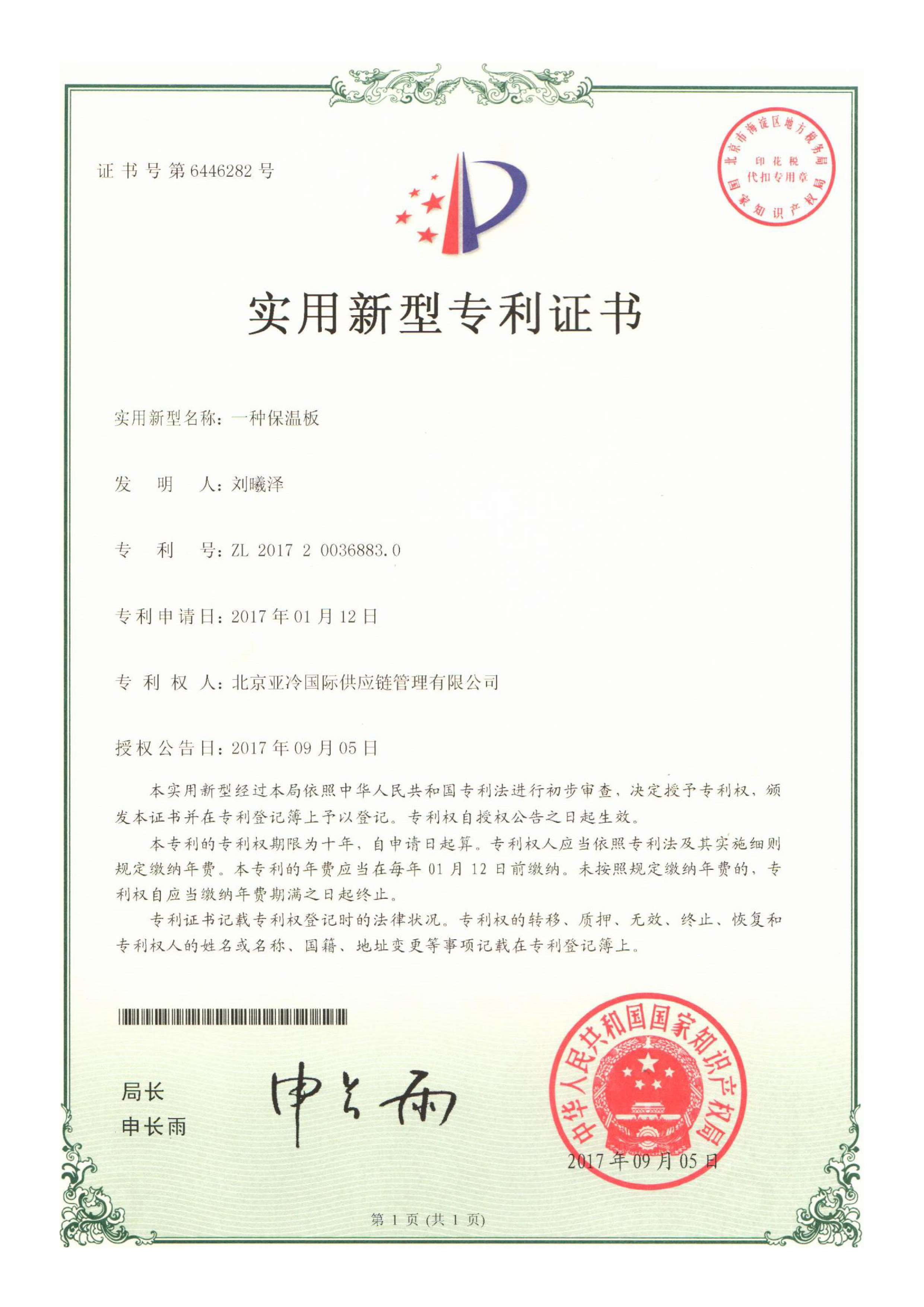 實(shí)用新型專利證書(shū) 冷鏈物流運(yùn)輸設(shè)備
