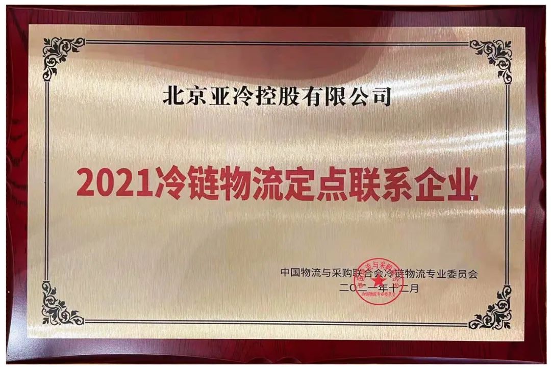 會(huì)議同期,亞冷被授予“2021冷鏈物流定點(diǎn)聯(lián)系企業(yè)”