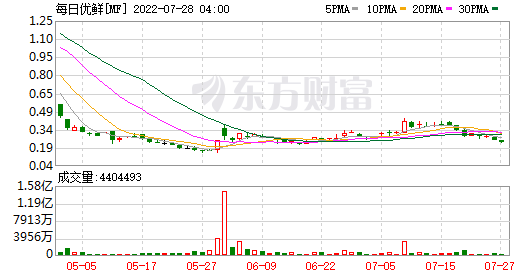 截至目前,每日優(yōu)鮮2021年財(cái)報(bào)繼續(xù)難產(chǎn)中,27日的股價(jià)跌到了0.23美元。