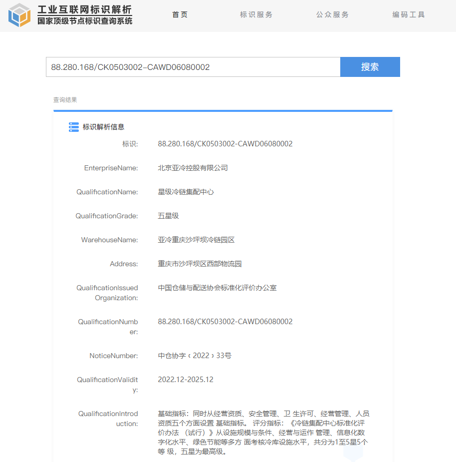 • 亞冷重慶沙坪壩冷鏈園區(qū)獲得“五星級(jí)冷鏈集配中心”榮譽(yù)
